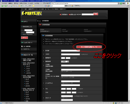 クリック後、次の登録画面が表示されます。 必要事項を記入し、 「確認画面へ」をクリックし記入内容をご確認下さい。