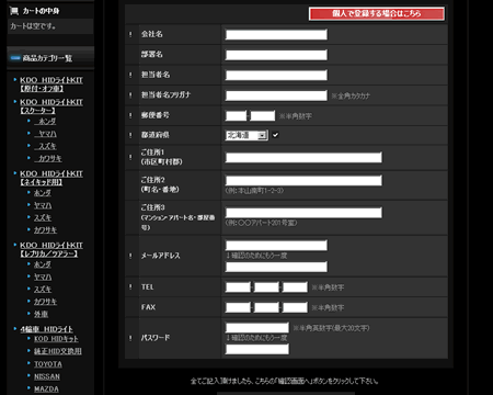 ■ 業販登録は個人事業主にかかわらず法人登録画面にてをお願い致します ■ ※ 屋号は会社名欄へ、ご担当者様のご入力も忘れずにお願い致します